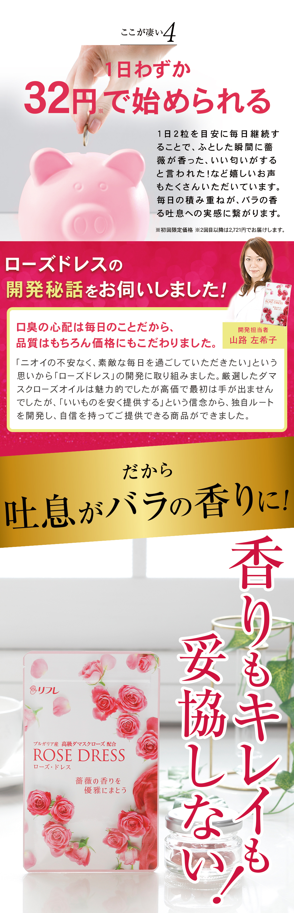 ※5)当社の「ローズドレス」には、健康被害が報道されている小林製薬株式会社の紅麹原料は一切、使用しておりません。ご安心ください。